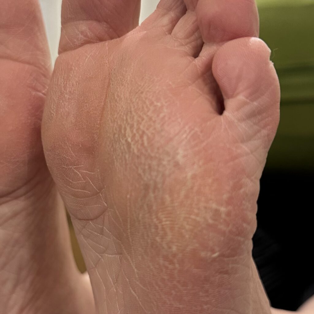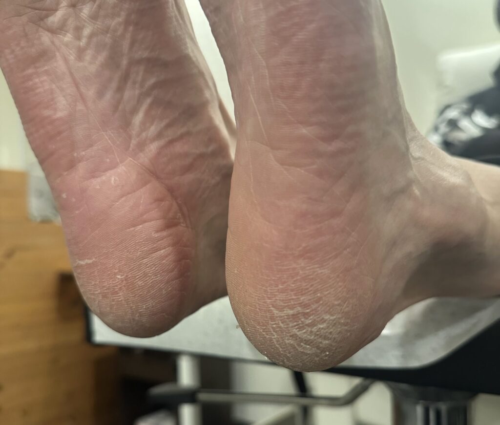 仕事復帰してからも、正しい姿勢と正しい動作づけの毎日の中、どうしても歩き方が良くならないお客様と話してる時に、寒くて踵が割れしまって〜って言葉を聞いた瞬間、膝から崩れて落ちそうでした。